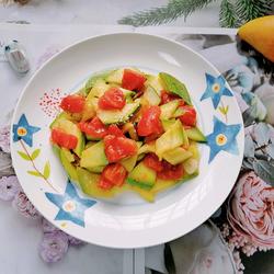 12.Place on a plate and garnish with a little white sesame seeds, and a delicious and nutritious tomato-fried zucchini is completed.