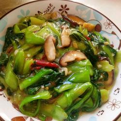 6.Put the drained mushrooms and rapeseed into the pot and stir-fry