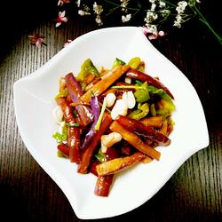 9.As soon as the oil comes out of the eggplant, sprinkle with garlic and stir-fry a few times to enhance the aroma.