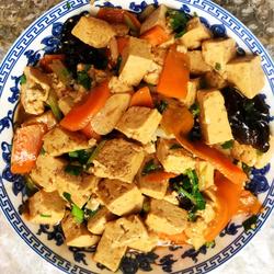 1.Tofu can also be fried in oil Stir-fry until both sides are golden brown;