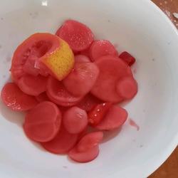 5.Put the cool lemon water into the radish.Cover with plastic wrap and put in the refrigerator