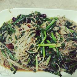 7. Stir-fry until the bean sprouts become soft, add the leeks and continue to stir-fry