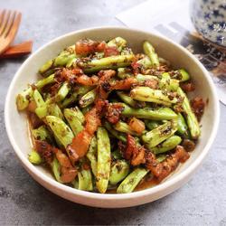3. First heat the pan and pour a small amount of oil to stir-fry the green beans until they are cooked.Focus, then drain and set aside.