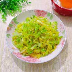 Stir-fry the cabbage quickly and evenly over high heat, then add oyster sauce and chicken essence.