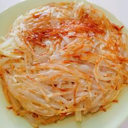 5. Heat the oil, add shredded potatoes, spread it flat, and use it on the side Arrange the chopsticks into round cakes