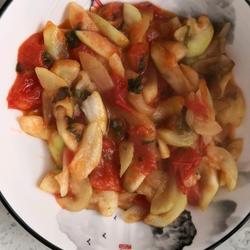 3.Add fried tomatoes, salt, sugar, appropriate amount