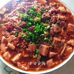9. Take the pot and put it on a plate, sprinkle with pepper powder and chopped green onion, a plate of numb, spicy, Fragrant and tender Mapo Tofu is out of the oven