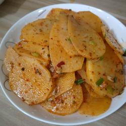 Drain the remaining water from the potato slices in the bowl and add all the seasonings.Chili powder and white sesame seeds need to be placed on the surface.