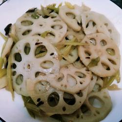 5.Add lotus root slices and stir-fry for a while.Add vinegar, light soy sauce, and appropriate amount of water (if you like spicy food, you can add some pickled pepper water)