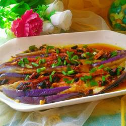 8.Take out the steamed eggplant and sprinkle with chopped green onion