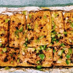 4. Finally, you can sprinkle onions or green chili dices, and the simple grilled tofu is ready.