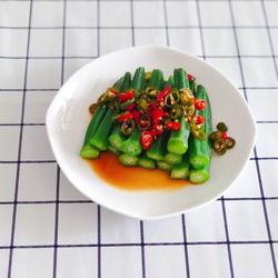4. Cut off the head and tail of the okra, and pour the prepared sauce on the plate.