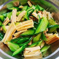 4. Boil the yuba and cucumbers and pour them into the pot together.Blanch them.Cucumbers can be eaten directly, so you don’t need to blanch them for too long.