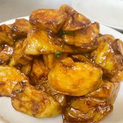 7. Heat oil in the pot Add the garlic and sauté until fragrant.Pour the juice into the pot and bring to a boil.After it boils, add the fried eggplant, stir well and serve.