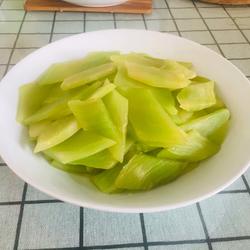 2. Heat the wok, add water to boil, add a little oil and salt, and put the lettuce Cook for about a minute.
