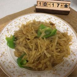 9.Add shredded potatoes and stir-fry evenly
