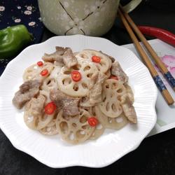 7.Put in last Stir-fry the meat slices and lotus roots together until the flavor is absorbed and serve.