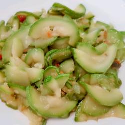 I usually add a little water to boil zucchini for a while.It doesn't have the taste of raw melon and is more delicious.