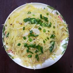 5. Dry the shredded potatoes, put them into the pot and stir-fry quickly for 3 minutes (it depends on the thickness of your shredded potatoes, thinner ones will make them easier to cook)