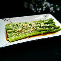 5. Top with light soy sauce, it tastes very fresh, then pour the garlic evenly on the asparagus.