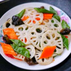 2. Wash the carrots and cut them into thin slices and set aside.Wash the lentils, remove the stems and cut them into diamond shapes.Garlic Peel and chop, wash lotus root, peel and slice, soak fungus in warm water.
