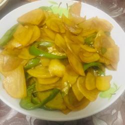 6.After frying, the delicious vinegar potato slices are ready.They are sour, salty and have a light green pepper flavor.Serve rice