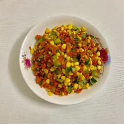 5. Add sweet corn and stir-fry until half cooked, then add cucumber and stir-fry until fragrant.