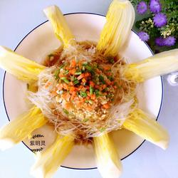 7.Put the soaked vermicelli in the middle, put minced garlic on top, and steam it in a steamer