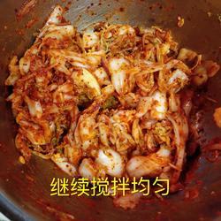 7.Add the pickled Chinese cabbage and continue stirring
